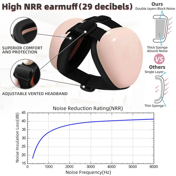 NRR بالا - معمولاً 29 دسیبل NRR (250 هرتز-2000 هرتز) در آزمایش ANSIS 3.19