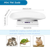 محدوده مقیاس: 1 گرم تا 15 کیلوگرم (0.01-33 پوند)، حداقل درجه 1 گرم. واحد: گرم / میلی لیتر / اونس / پوند. وقتی به عنوان ترازو حیوان خانگی استفاده می شود. این برای وزن کردن حیوانات خانگی کوچک مانند بچه گربه های کوچک، توله سگ ها، طوطی ها، همسترها، سنجاب ها، عنکبوت ها، مارمولک ها، خرگوش ها و سایر حیوانات کوچک است.