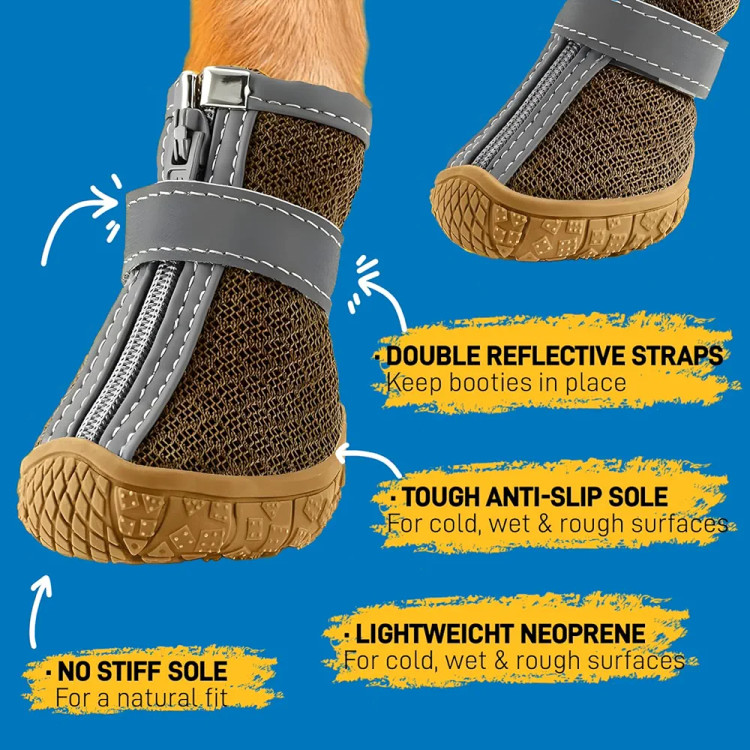 چکمههای ضد لغزش برای سگها: چکمههای سگ نرم و قابل تنفس برای پنجهها هستند، کفشهای سگی به طور موثری از پنجههای سگ در برابر گرما، سنگ و شیشه محافظت میکنند. پوشیدن کفشهای سگی ما نه تنها توله سگ ما را قادر میسازد تا با خوشحالی روی آسفالت داغ راه برود، بلکه از پنجههای ضعیف در برابر برف، یخ و باران در زمستان نیز محافظت میکند.