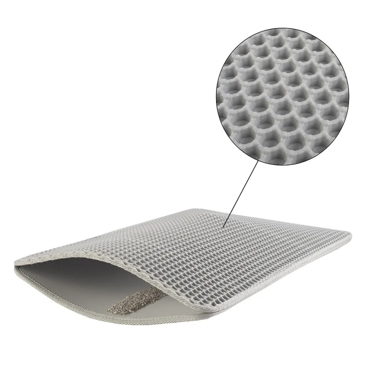 PETMAKER Cat Litter Mat, 40 x 50 Cm, Waterproof, Double-Layer Honeycomb Design to Trap Litter, Non-Slip Cat Mat (Grey)