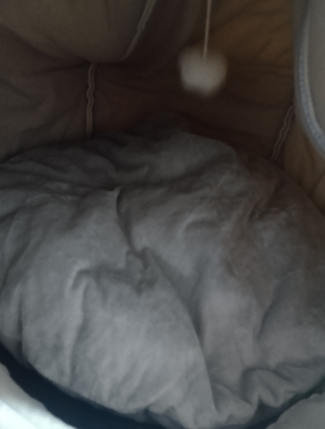 یک تخت گربه دنج و نیمهپوشیده برای خواب گربهها. یک توپ آویزان بچه گربهها را سرگرم میکند. این اسباببازی آویزان همیشه برای یک بازی سریع در دسترس است.