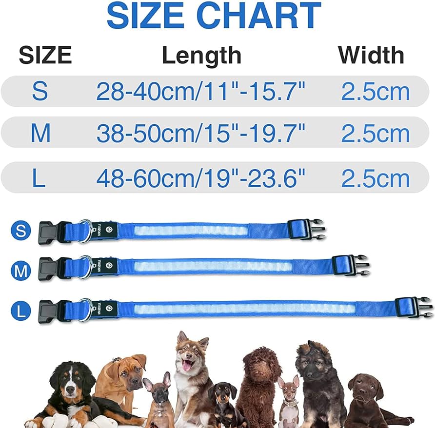 قلاده گردنبندی چراغ دار رنگ آبی سایز S برند MASBRILL (برای اندازه گیری اسلاید آخر عمس ها را ببینید)