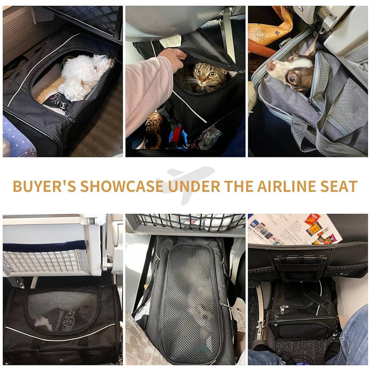 مورد تایید خطوط هوایی: این کیف حمل گربه مورد تایید اکثر خطوط هوایی است. لطفاً ابعاد دقیق را با فرودگاه هماهنگ کنید. ابعاد کیف حمل گربه ۴۷ سانتیمتر در ۲۳ سانتیمتر در ۳۱ سانتیمتر است و برای حیوانات خانگی تا وزن ۸ کیلوگرم مناسب است. اما لطفاً قبل از خرید، اندازه حیوان خانگی خود را اندازه بگیرید تا مطمئن شوید که برای او مناسب است.