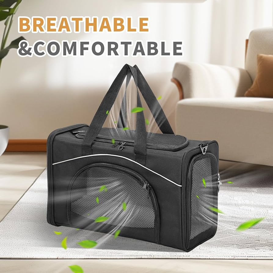 مورد تایید خطوط هوایی: این کیف حمل گربه مورد تایید اکثر خطوط هوایی است. لطفاً ابعاد دقیق را با فرودگاه هماهنگ کنید. ابعاد کیف حمل گربه ۴۷ سانتیمتر در ۲۳ سانتیمتر در ۳۱ سانتیمتر است و برای حیوانات خانگی تا وزن ۸ کیلوگرم مناسب است. اما لطفاً قبل از خرید، اندازه حیوان خانگی خود را اندازه بگیرید تا مطمئن شوید که برای او مناسب است.