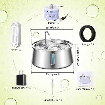 طراحی پنجره آب و شیر آب: این آبخوری حیوانات خانگی مجهز به یک پنجره سطح آب است که مشاهده و پر کردن به موقع آب را آسان میکند. خروجی به شکل شیر آب با عادات نوشیدن حیوانات خانگی در زیر شیر آب مطابقت دارد. جریان پویای آب میتواند حیوانات خانگی را به نوشیدن بیشتر جذب کند، که میتواند از ابتلای حیوانات خانگی به بیماریهای ادراری و کلیوی جلوگیری کند.