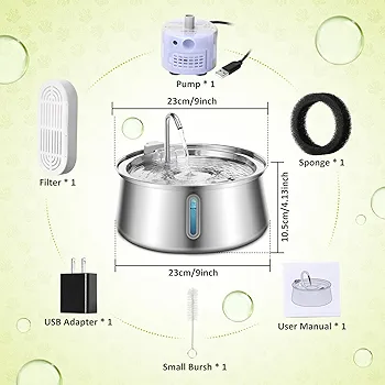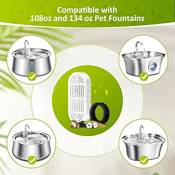 ☘️【سیستم تصفیه و گردش آب】آبخوری سگ دارای یک فیلتر کربنی و اسفنج پیشفیلتر است که میتواند آب را تمیز، تصفیه، تازه و طعم آب را برای حیوانات خانگی بهبود بخشد. توصیه میکنیم فیلتر و اسفنج را هر 2 تا 4 هفته یکبار تعویض کنید و آبخوری و پمپ را هفتگی تمیز کنید.