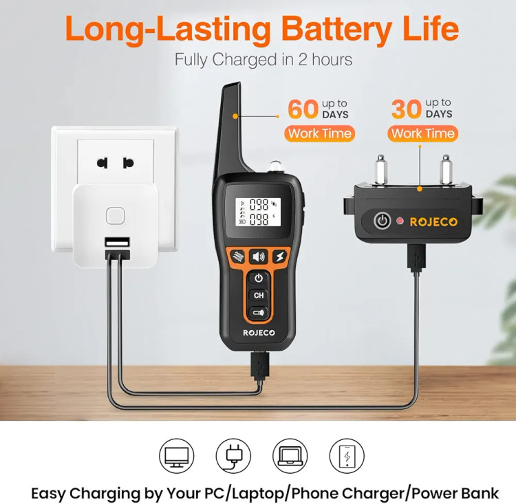 ⭐【باتری شارژ شده USB و زمان آماده به کار طولانی】: هر دو یقه پوست و ریموت را می توان در عرض 2 ساعت به طور کامل شارژ کرد. حداکثر ظرفیت باتری گیرنده 650 میلی آمپر ساعت است و می تواند 30 روز کار کند. حداکثر ظرفیت باتری ریموت 300 میلی آمپر ساعت است و می تواند 60 روز کار کند.