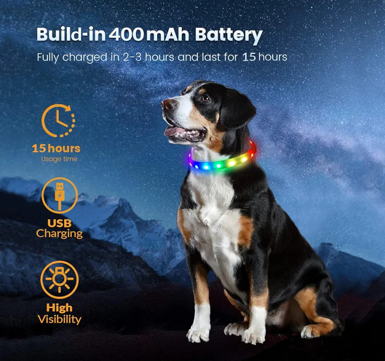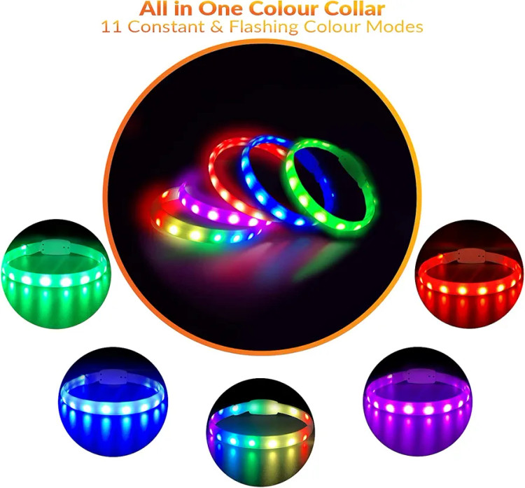 PET.TEC LED Dog Collar All in One Glowing Pet Collar for Night Safety with 11 Different Flashing Light Modes, Cut To Size Universal Fit, for X-Small To X-Large Dogs
