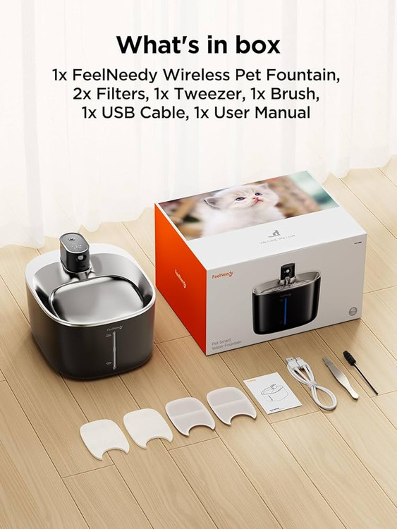 پمپ بیصدا: شما و نوزادان پشمالویتان حتی اگر کاسه آب گربه FeelNeedy درست کنار تخت شما باشد، به راحتی خواهید خوابید. پمپ پیشرفته با صدای کم ۲۵ دسیبل کار میکند و عملاً بیصدا است. بخار آب به طور غریزی سرگرمکننده است: برای لذتبخشتر کردن نوشیدن آب، کاسه آب فواره گربه FeelNeedy همچنین دارای یک عملکرد توزیع خودکار است که از یک حسگر حرکتی برای فعال کردن جریان آب استفاده میکند. صدا و حرکت آب، گربه شما را به نوشیدن ترغیب میکند.