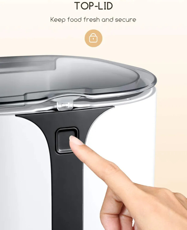 طراحی کاربردی: پوشش بالایی یک درزگیر ایجاد میکند تا غذای درشت آسیاب شده را تازه نگه دارد و تضمین کند که حیوان خانگی شما غذای مورد نیاز خود را دریافت میکند. ظرف غذای قابل جابجایی، کاسه پلاستیکی و محفظه ABS، مونتاژ و تمیز کردن آن را آسان میکند.