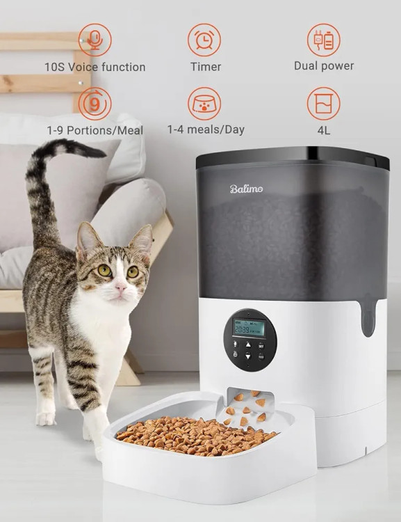 ظرف غذای اتوماتیک سگ و گربه برند Balimo با حجم 4لیتر,با قابلیت ضبط صدا روی دستگاه
