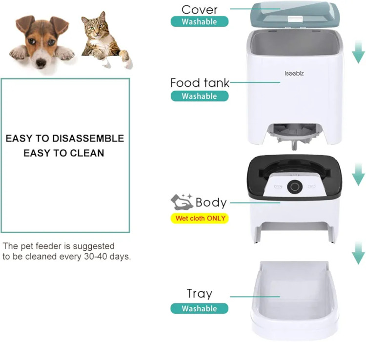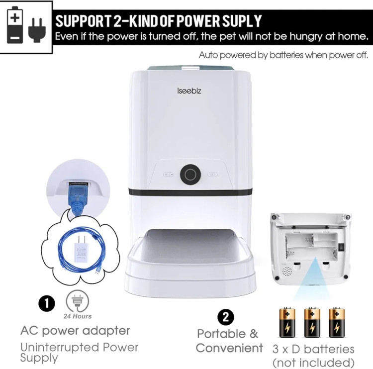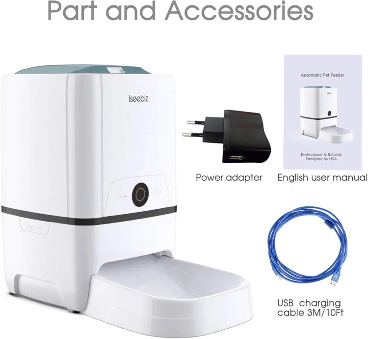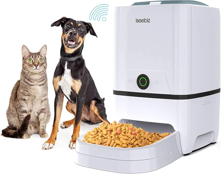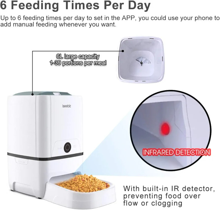 Iseebiz Automatic Pet Feeder 6L Smart Feeder Dog Cat Food Dispenser with WiFi App Control,Voice Recording,Timer Programmable, Portion Control, IR Detect, 8 Meals Per Day for Small and Medium Pet