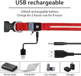 قلاده سگ قابل شارژ USB نورانی - با جستجوی باتری خداحافظی کنید. قلاده سگ چشمکزن ما قابل شارژ است. باتری داخلی ۲۵۰ میلیآمپر ساعتی توله سگ شما را تا ۱۰ ساعت روشن نگه میدارد و تنها در ۲ ساعت به طور کامل شارژ میشود. شارژی که برای چندین پیادهروی کافی است. مناسب برای کمپینگ، پیادهروی عصرگاهی و ماجراجوییهای شبانه در حیاط خلوت