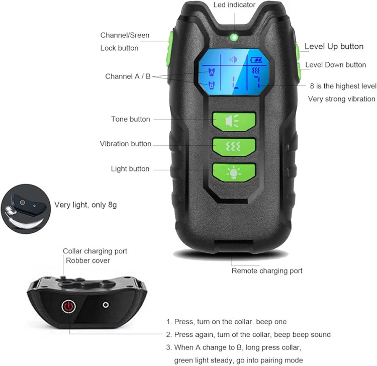 1-8 سطح لرزش قابل تنظیم. لرزش بسیار قوی. لطفا از سوالات و پاسخ های مشتری قلاده آموزش سگ را بیشتر بیاموزید.