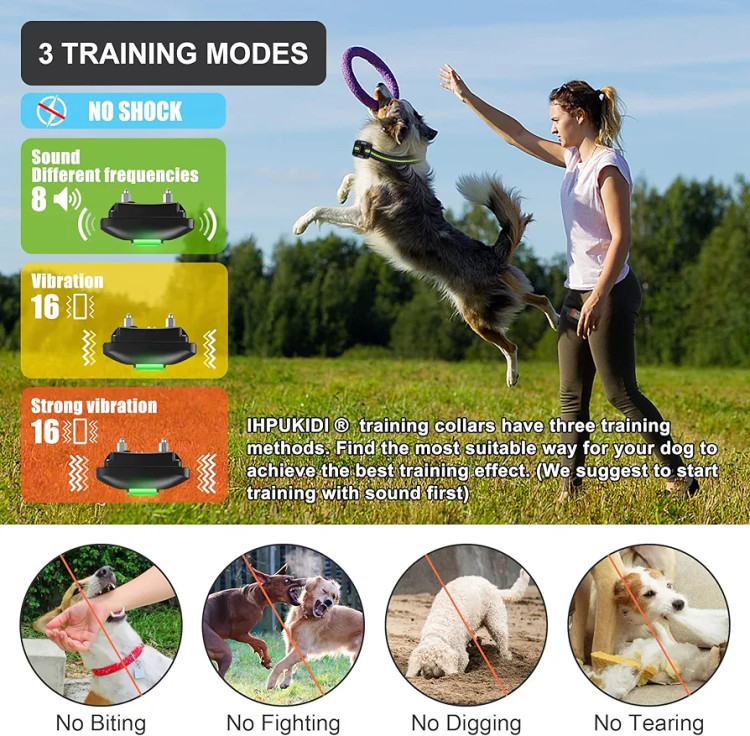 قلاده آموزشی و ضد پارس سگ ضدآب, بدون شوک، دارای دو حالت ویبره و صدا برند IHPUKIDI