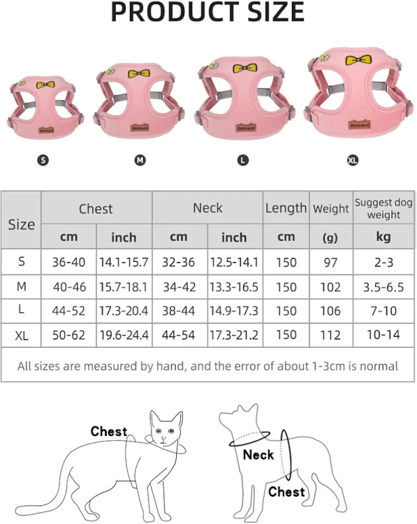 بند سگ با پاپیون دوزی زیبا: این بند برای گربه ها، توله سگ ها، سگ های کوچک و متوسط مناسب است. بر اساس تجربه قدیمی خود خرید نکنید، لطفاً همیشه قبل از سفارش، پهن ترین قسمت سینه و گردن حیوان خانگی خود را اندازه بگیرید. اگر داده های شما بین دو اندازه است، توصیه می کنیم اندازه بزرگتر را انتخاب کنید.
