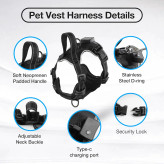 MASBRILL Light up Dog Harness, LED Dog Vest Harness Rechargeable, Adjustable & Reflective Dog Light Harness with Handle & 2 Lead Clips, Soft Padded Harness for Small, Medium Large Dogs(Blue L)