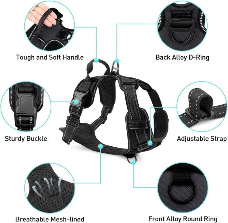 جزئیات ایمنی: نوارهای 360 درجه بسیار بازتابنده در اطراف مهار حیوان خانگی دید خوبی را در تاریکی فراهم می کند. دسته قوی و پهن به شما امکان می دهد حداکثر فضا را داشته باشید تا سگ خود را هنگام راه رفتن در میان جمعیت یا عبور از کنار سگ دیگری کنترل کنید.