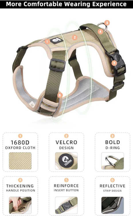 BRT Bearingshui Adjustable No Pull Dog Harness and Leash Set, Easy Control Reflective Oxford Dog Harness with a Heavy Duty Leash, Escape Proof, No Pull Vest Harness