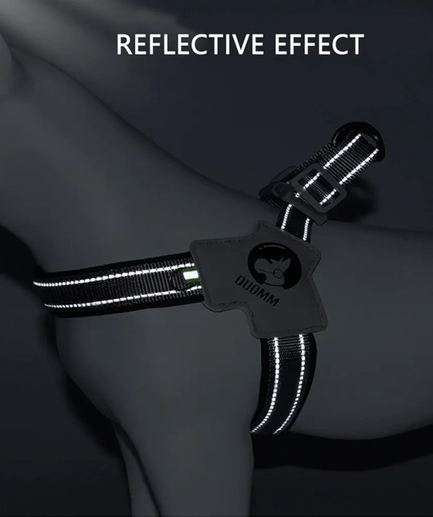 قلاده کتفی و مهاربند سگ ،با نوار شب تاب برند DUOMM (سایز M «دور سینه 45.5 تا 55.5 سانتی متر» نحوه اندازه گیری را در اسلاید چهارم عکس ها ببینید)