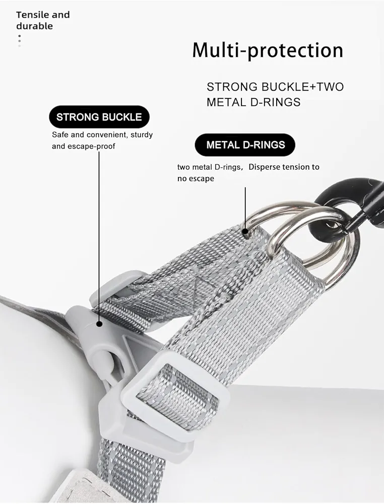 【بدون کشش و خفه کردن】 مهار سگ نگهدارنده دارای 2 حلقه D فلزی مستحکم است که به راحتی شل می شود و فشار انگشت را کاهش می دهد، لایه داخلی مشبک داخلی سگ شما را خنک و راحت نگه می دارد. کمک به پراکنده کردن نیروی کشش به راحتی سگ خود را در حین راه رفتن، آموزش و غیره کنترل کنید تا از خفگی یا کشیدگی گردن جلوگیری کند.