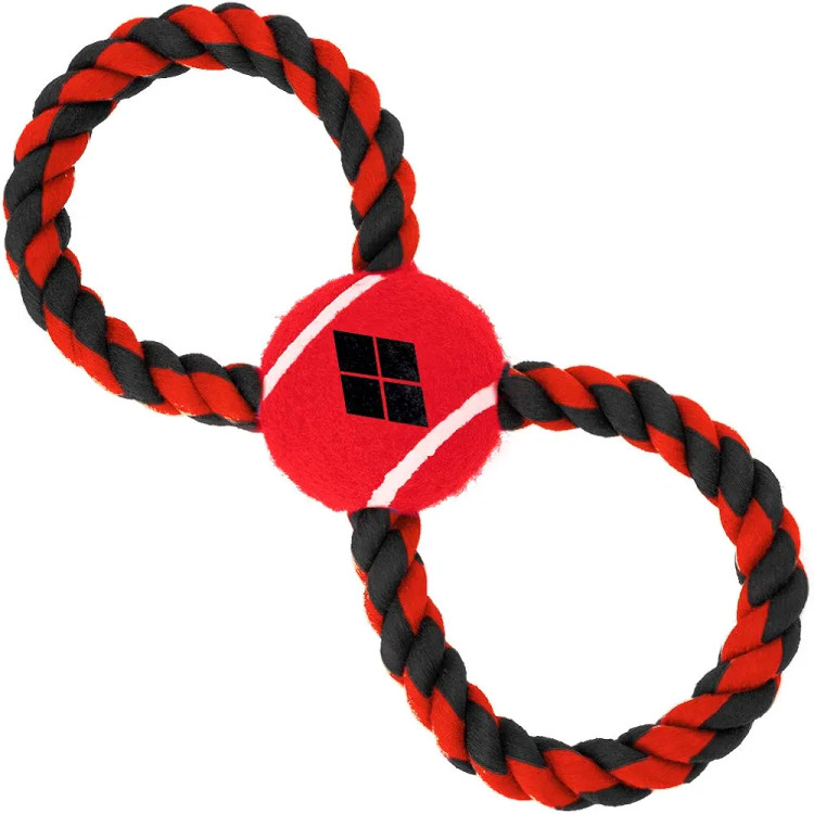 Dog Toy Rope Tennis Ball Harley Quinn Diamond Icon Red Black Red Black Rope