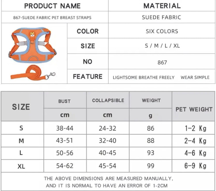 * جنس راحت و سبک: این محصول از پارچه جیر ساخته شده است که آن را برای حیوان خانگی شما در روزهای گرم سبک و خنک می کند. دارای نوارهای بازتابنده است که برای ایمنی بیشتر آن را در شب قابل مشاهده می کند.