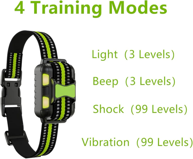 ★【4 حالت آموزش】>>> - قلاده آموزش برقی سگ قابل تنظیم از 0 تا 99 سطح برای لرزش و شوک، 0-3 سطح بوق و نور. 4 نوع تحریک به اصلاح پارس کردن، راه رفتن، پرخاشگری و سایر اطاعت رفتاری کمک می کند، قلاده آموزش سگ که توسط مربیان متخصص و صاحبان حیوانات خانگی برای اولین بار استفاده می شود.