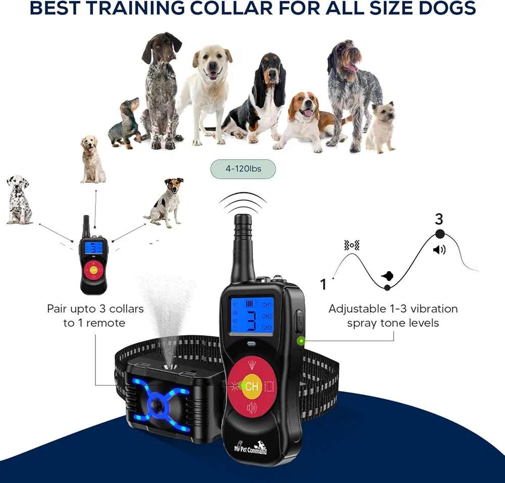 جدیدترین قلاده ریموت دار آموزشی ضد پارس تربیتی ،دارای سه حالت صدا،ویبره و پاشش اسپری برندMy Pet Command