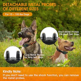 2 جفت پروب فلزی قابل جابجایی: این قلاده آموزشی سگ دارای یک جفت پروب فلزی کوتاه و یک جفت پروب فلزی بلند است. اجازه دهید سگ های مو بلند شما از پروب های فلزی بلند استفاده کنند و سگ های مو کوتاه از پروب های فلزی کوتاه استفاده کنند. توجه: پروب های فلزی قابل جابجایی هستند. اگر نیازی به حالت شوک ندارید، می توانید پروب های فلزی را بردارید تا اصطکاک روی گردن سگ خود را کاهش دهید.