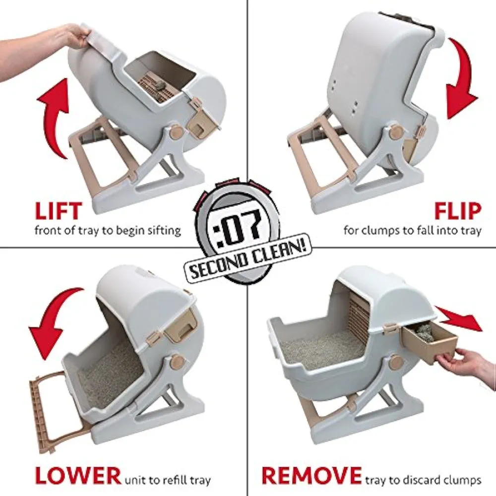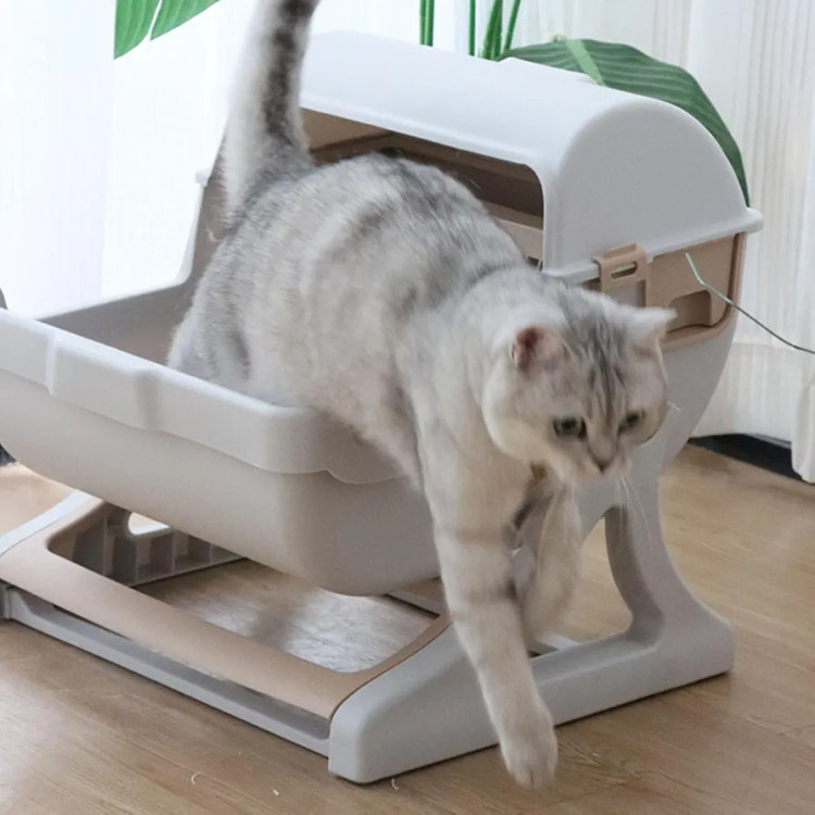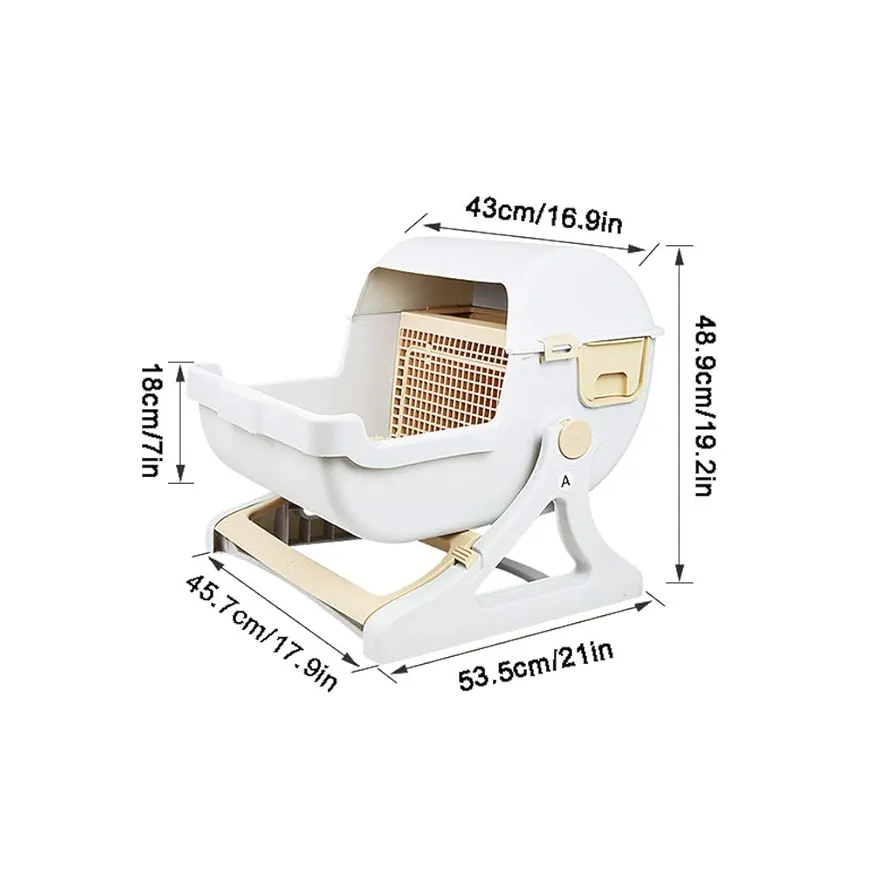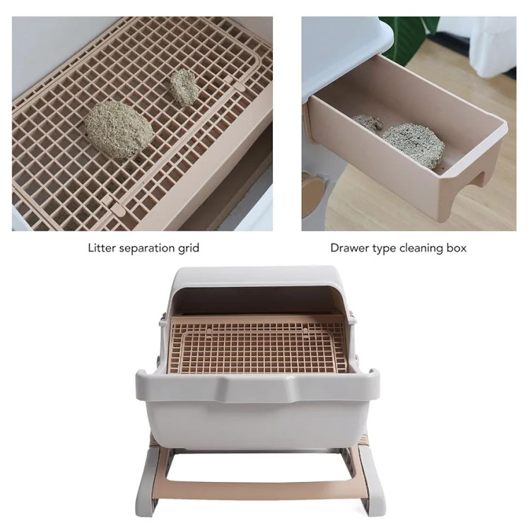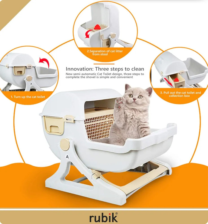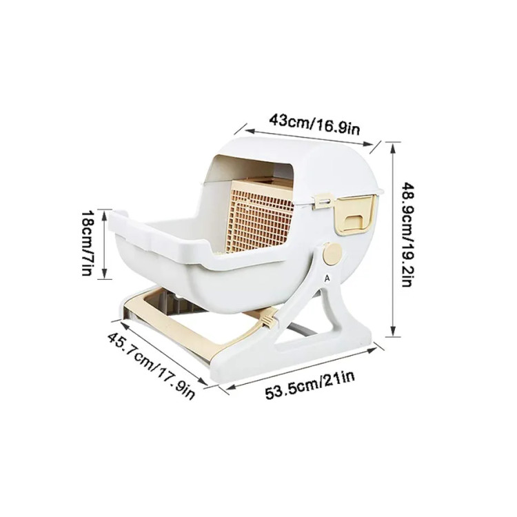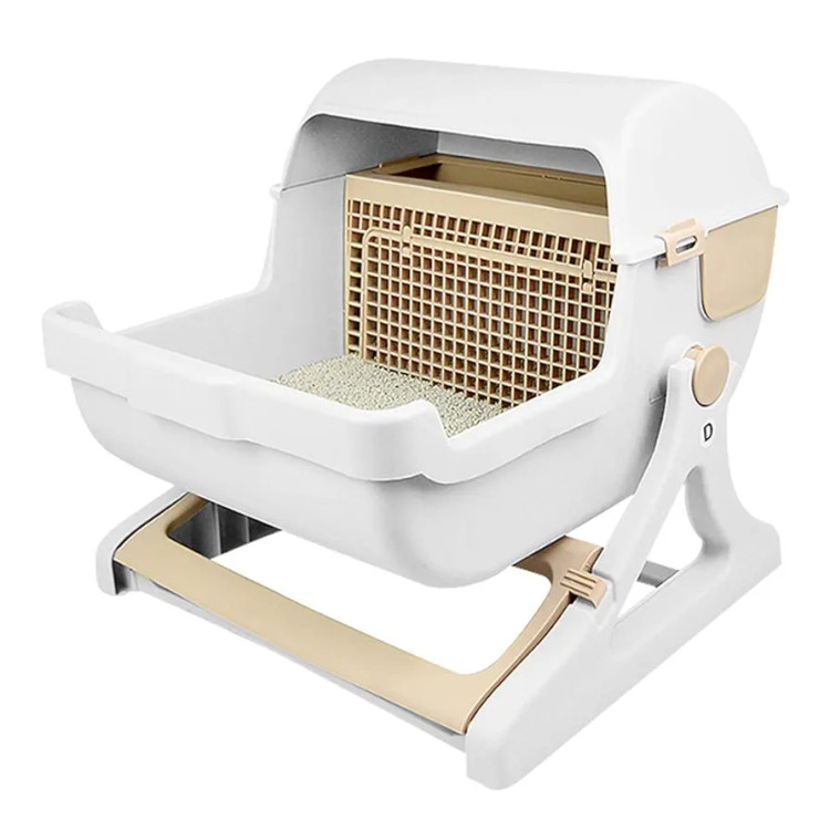 توالت گربه نیمه اتوماتیک تمیز کردن سریع، توالت گربه لوکس (سفید / قهوه ای شیری)